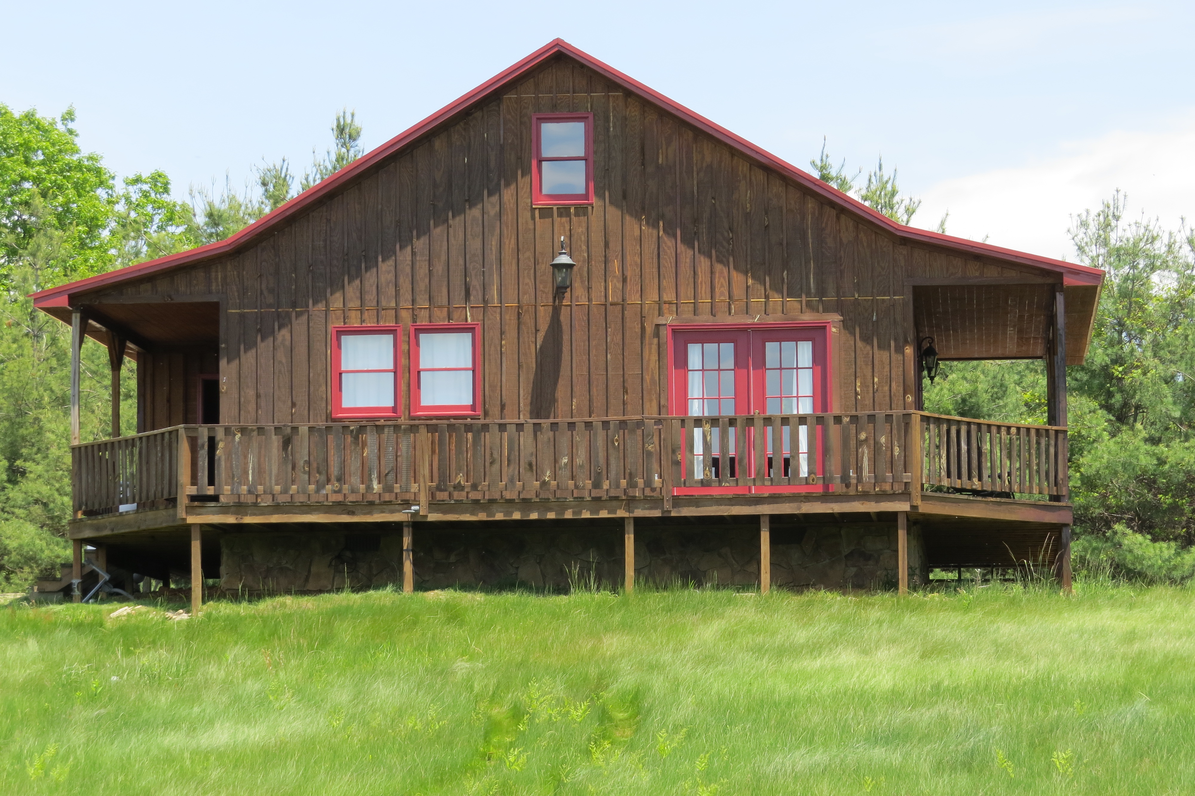 Bland cabin with freshly painted doors and windows